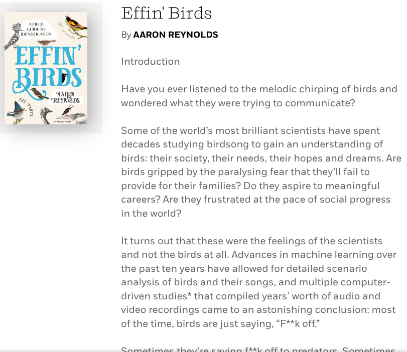 Including never-before-seen birds, insults, and field notes, this guide is a must-have for any effin’ fan or birder.